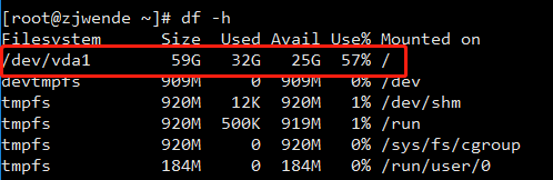 運(yùn)行 df -h 查看云盤分區(qū)大小,如圖: